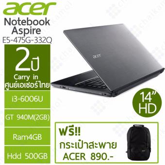 ⚾ ลดพิเศษ Acer Aspire E5-475G-332Q 14"HD / i3-6006U / GT 940MX / 4GB / 500 GB / 2Y (Grey) โปรโมชั่น affiliate